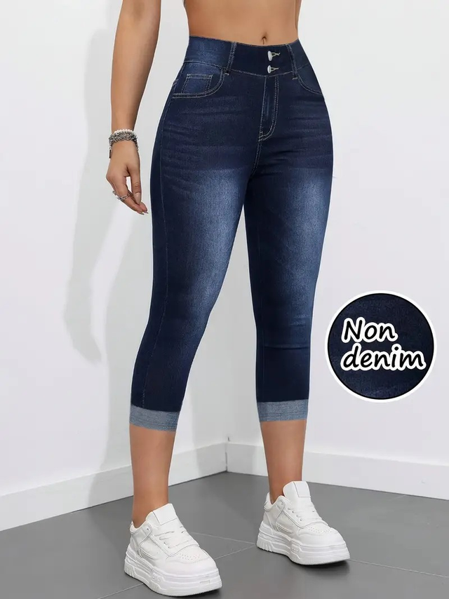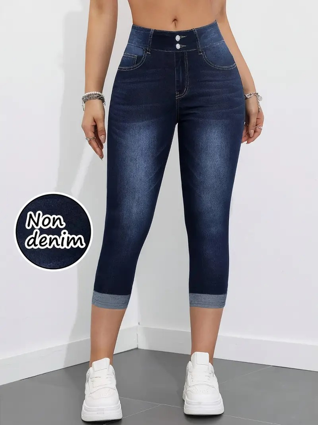 Women's High-Stretch Imitation Denim Capri Pants