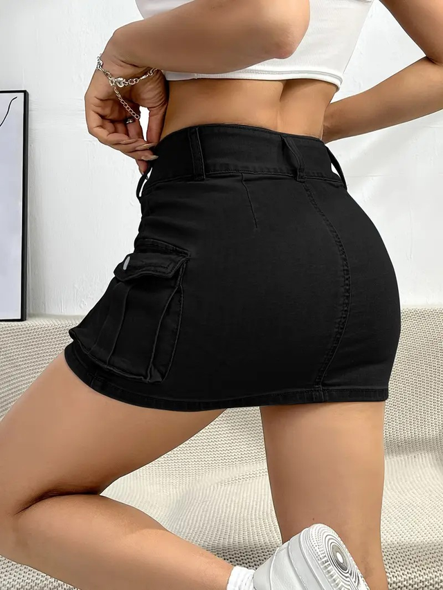 Women's High-Waisted Denim Skirt with Pockets