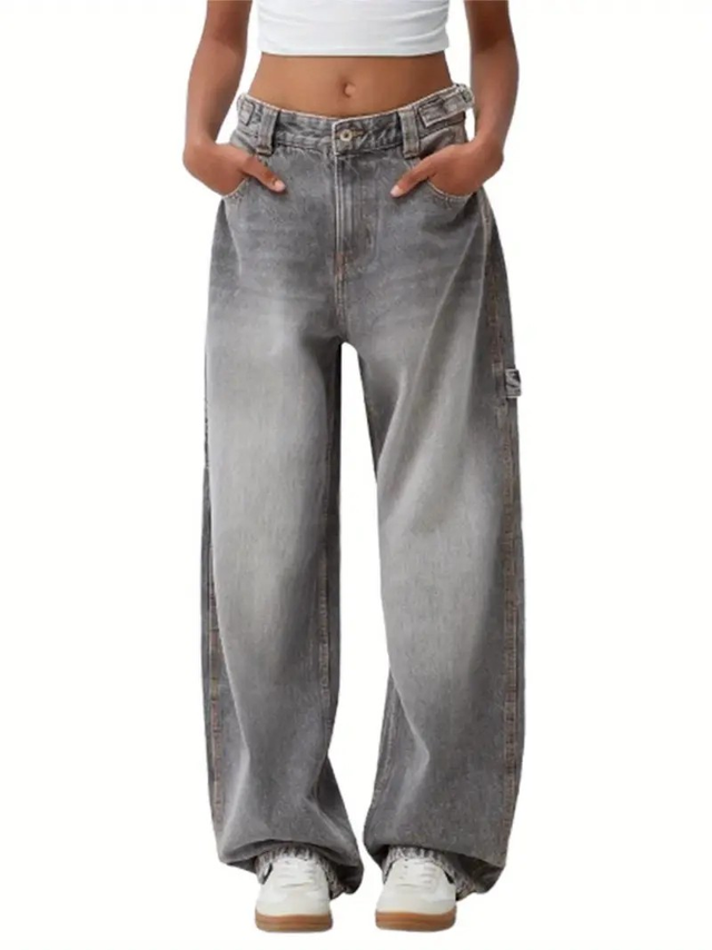 Loose small foot banana bloomers, mid-waist Women's pants, American retro wash blue jeans for women, Spring and Autumn fashion brand loose straight leg wide leg casual pants, spring American high street loose wide leg pants.