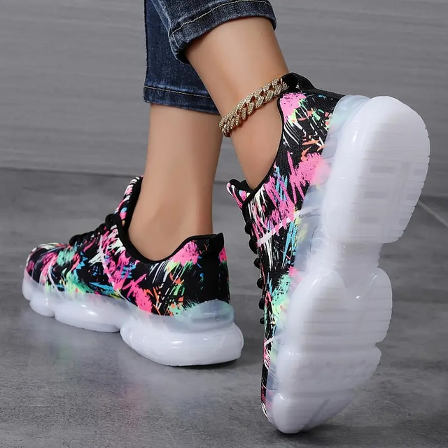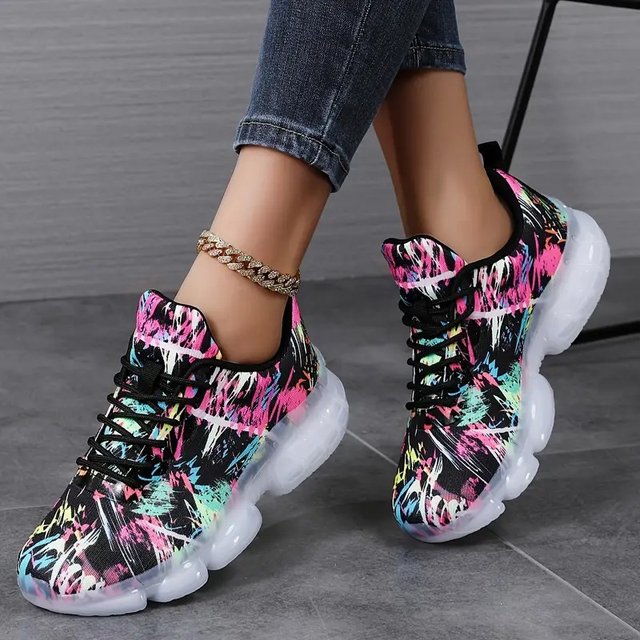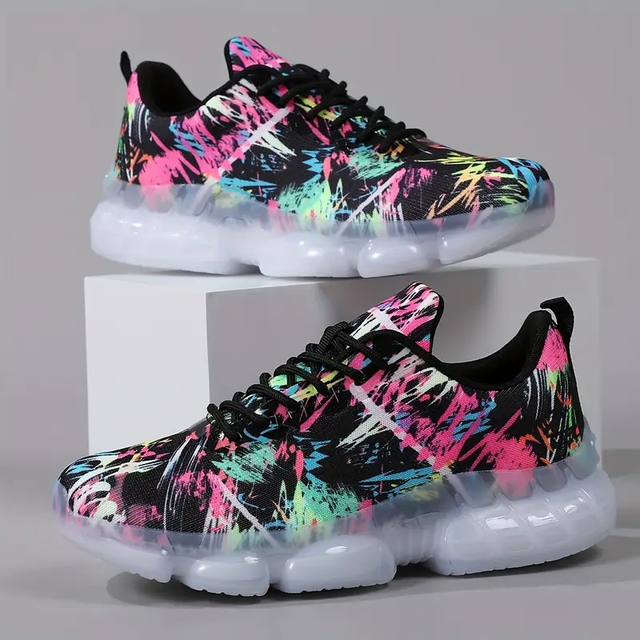 Women's Low-Top Sneakers - Breathable Lace-Up Shoes in Neon Pink, Green, Purple, Black - Cushioned TPU Sole for Gym, Running, Everyday - Lightweight All-Season Sneakers - Easy-Clean Design, Ladies Sneakers, Gym Footwear, Vibrant Pattern Design, Fabric Upper, Comfortable Fit, Durable Construction, Fitness Enthusiasts