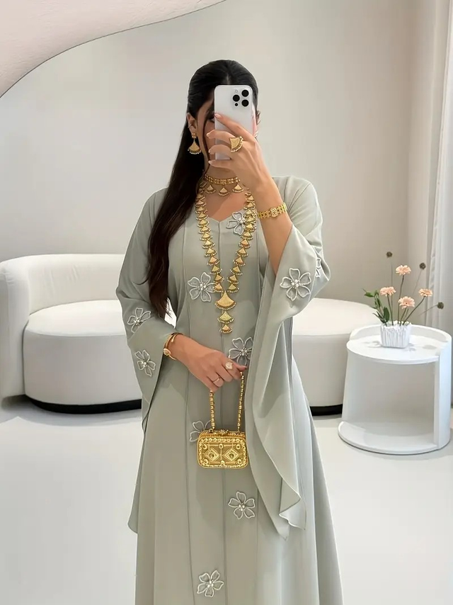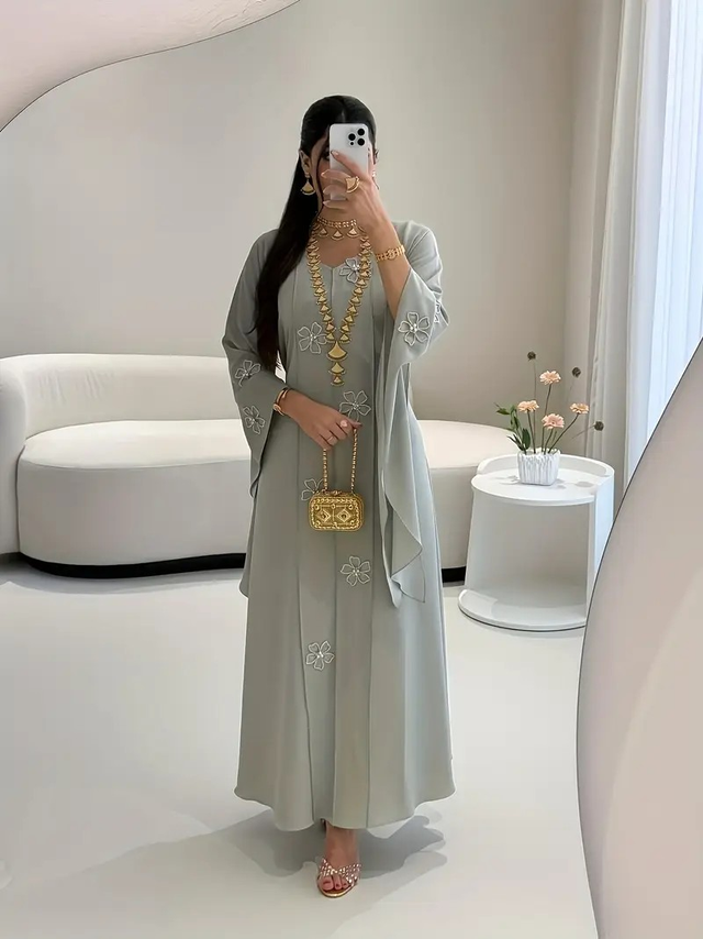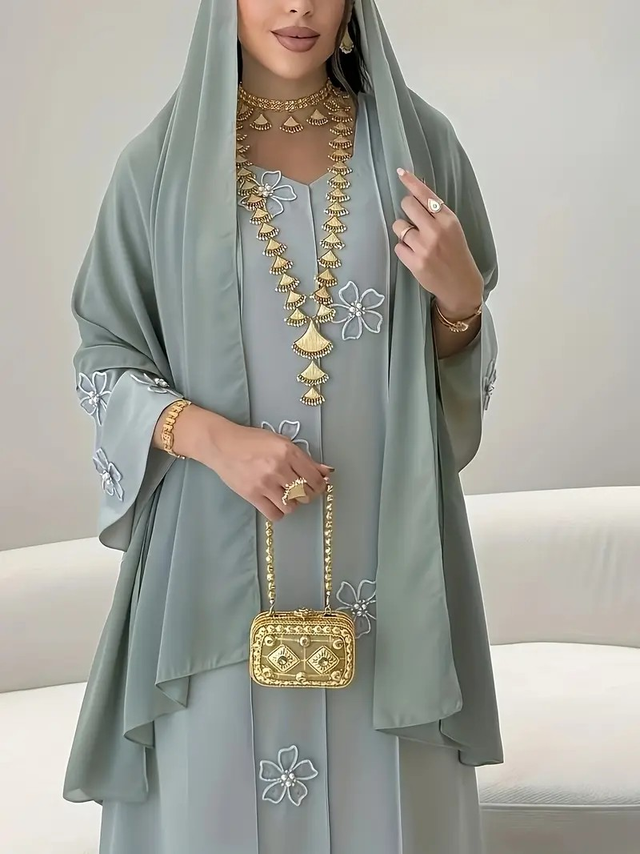 Solid Color Lace Decorated Long Robe Simple Women'S Arabian Long Robe Muslim Prayer Dress Loose Islamic Clothing Long Sleeve Formal Dress Dubai Style Luxury Abaya, Headscarf