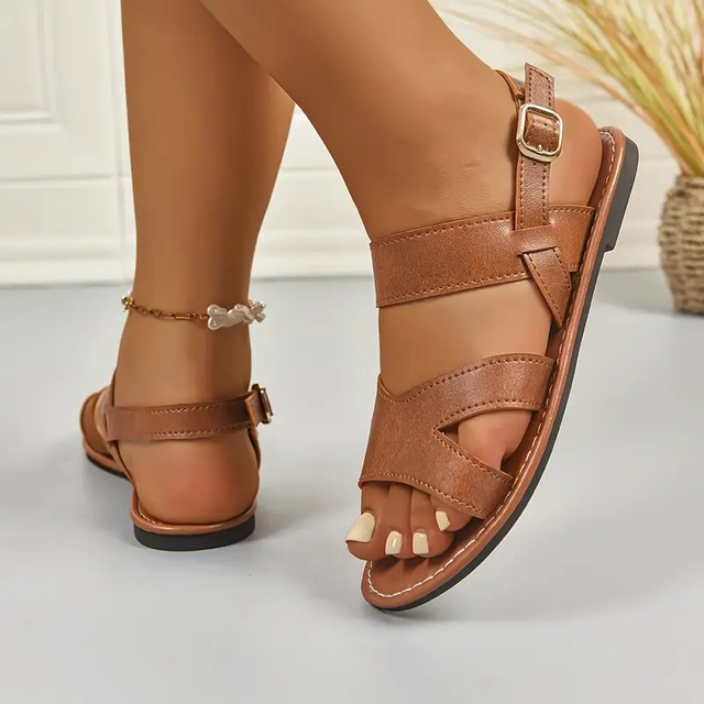 Women's New Plus Size Adjustable Buckle Strap Flat Sandals