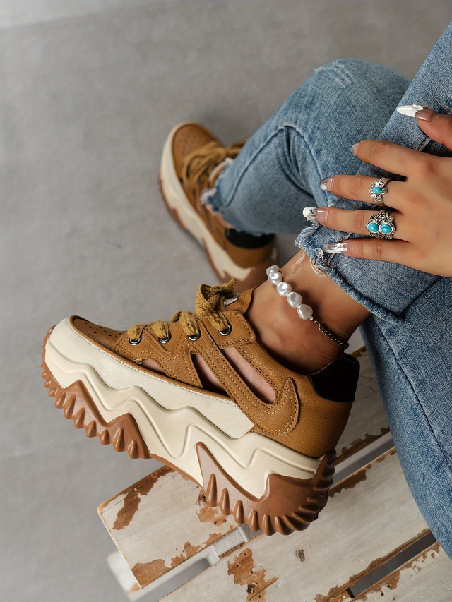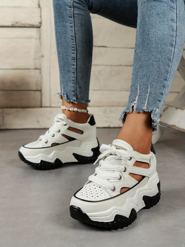 Women's Platform Sandals with Thick Platform Heel - Beige & White Closed-toe Lace-Up Shoes, Cushioned Insole - Synthetic Cover for Everyday, Parties, Formal Events - Spring/Summer Footwear, Chunky Heel Sandals, Everyday Comfort Shoes, Modern Footwear, Breathable Design