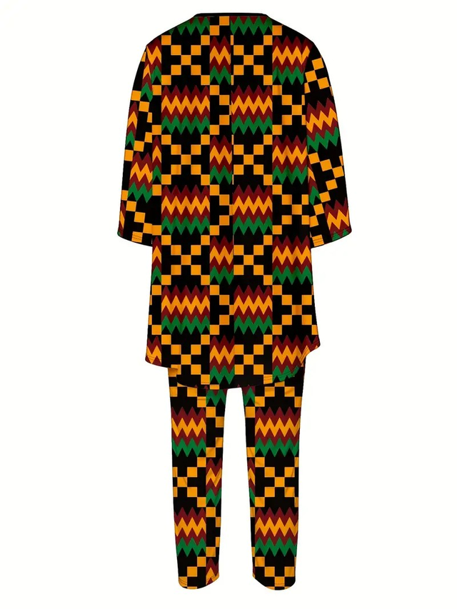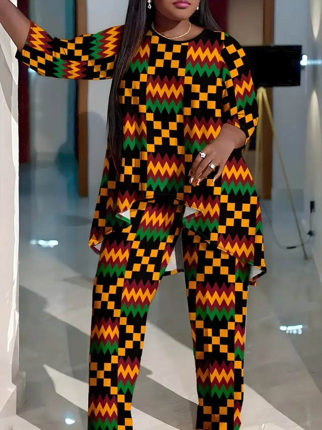 Women's Plus Size Plaid Print Casual Long Pants Set