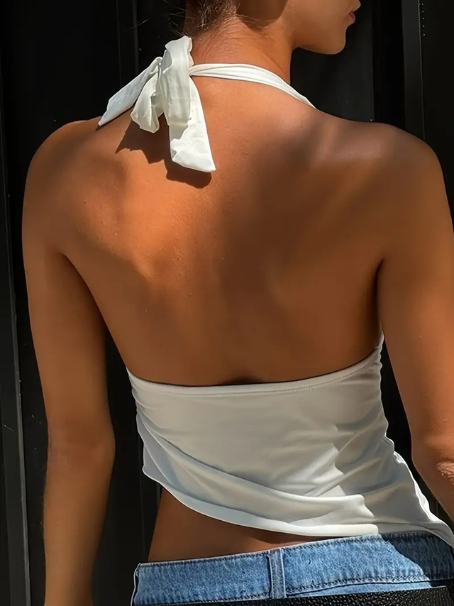 Women'S Sexy Halter Neck Tank Top, Solid Color Backless Asymmetrical Top for Spring/Summer, Fashion 2025
