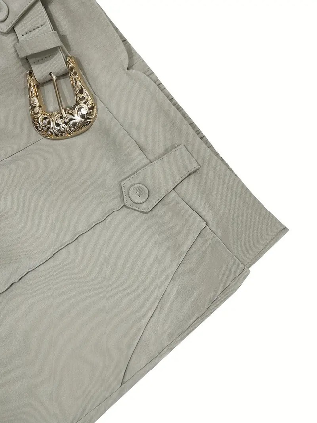 Women'S Slim Fit Casual Shorts with Decorative Golden Belt & Pockets - Solid Color All-Season Versatile Style, High Waist Design, Comfortable for Casual Attire, High Waisted Shorts