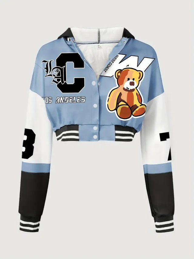 SPECHIR Women's Casual Hooded Jacket - Letter Print, Button Detail, Stretchy Polyester Blend, Machine Washable - Perfect for Spring/Fall