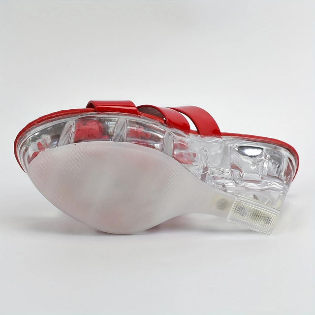Stylish Red Open-Toe High Heel Sandals for Women - Slip-On Transparent Strap Platform Pumps with Sole, Faux Cover Upper & Rubber Sole, Perfect for Music Festivals, Night Out, and Fashion Shows, Stiletto Heels
