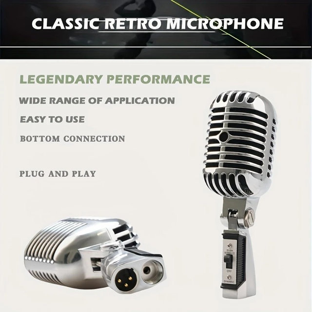 XLR Connection 6.35mm Jack XGES-55 Vintage Dynamic Microphone - Classic Retro Style for Karaoke, Singing & Recording