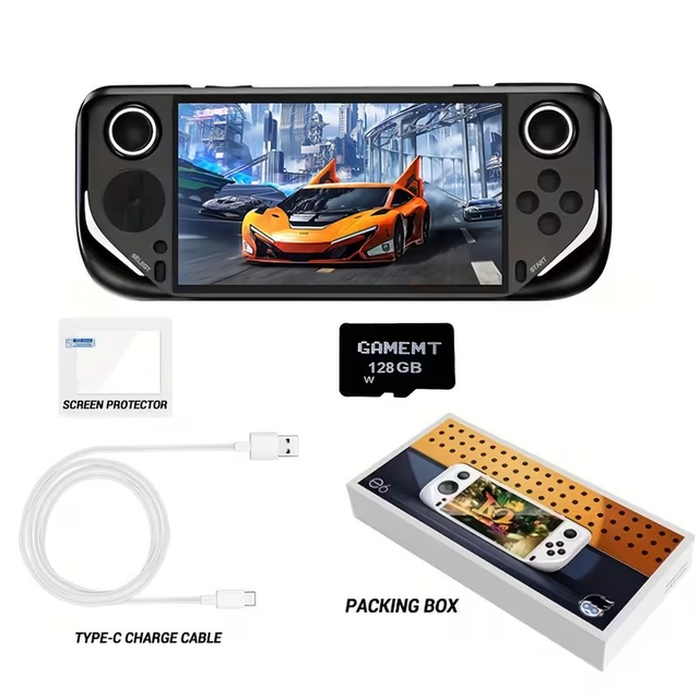 YLFASHION E6 Black Handheld Game Console with 12.7cm IPS Screen, 64GB/128GB TF Card, 5000mAh Rechargeable Battery, USB-C Charging, 4K HD Display, Adjustable 4:3 Aspect Ratio, Retro Gaming Console for Boys & Girls - Perfect Back-to-School & Holiday Gift, Gaming Accessory, Sleek Design, Durable Construction, Switch Console Original, Retro Handheld, Console