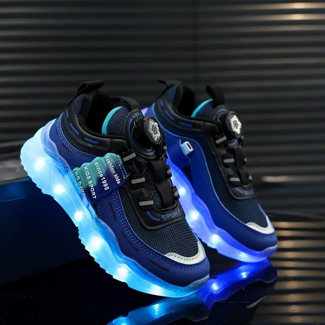 GUANGLAN USB Rechargeable LED Light-Up Sneakers for Youngsters - Breathable Mesh Upper, Rotating Buckle Closure, Color-Changing Lights, Casual Sneakers for Boys & Girls - Blue, Youngsters Casual Shoes | Streetstyle Sneakers | Glowing Accents